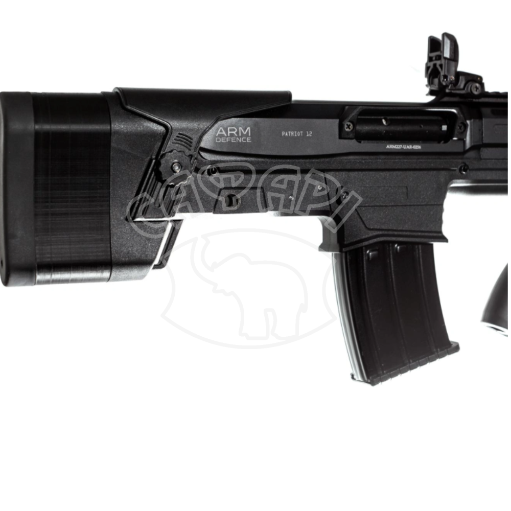 ARM Defence PATRIOT-12 — це компактна напівавтоматична гладкоствольна рушниця 12 калібру у буллпап-компоновці, створена для максимальної маневреності в обмеженому просторі. Завдяки скороченій загальній довжині при збереженні ефективної довжини ствола, модель забезпечує високу зупиняючу дію та швидке наведення на ціль.