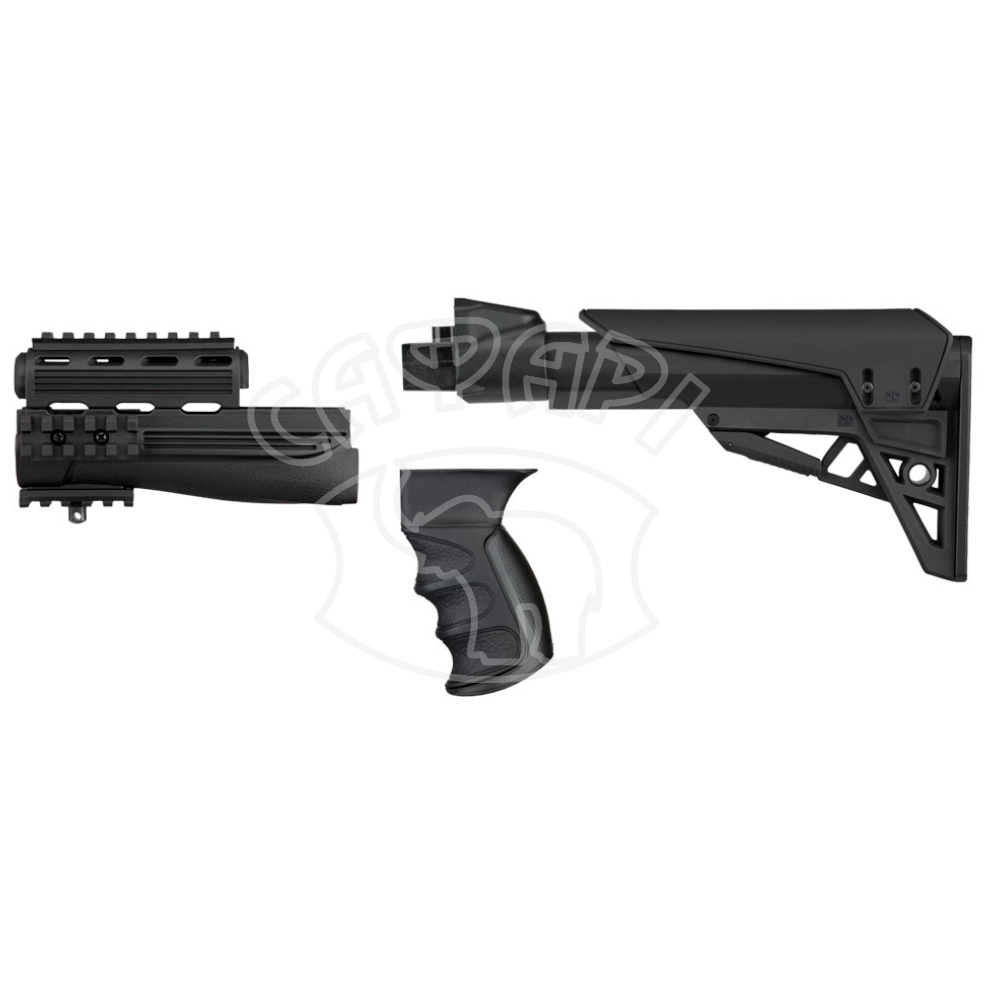 Тактический обвес для АК ATI Strikeforce Elite предназначен для замены штатного цевья, пистолетной рукоятки и фиксированного приклада АК со штампованной ствольной коробкой. Материал — армированный полимер DuPont® Extreme.